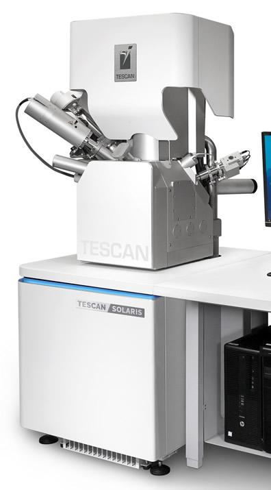 TESCAN SOLARIS 是一款鎵離子源的 FIB-SEM 系統(tǒng),適用于超薄 TEM 樣品制備和其它具有挑戰(zhàn)性的納米加工任務,這些任務要求設備具有良好的分辨率、先進的離子光學系統(tǒng)和納米加工能力。TESCAN SOLARIS 的 Triglav? 型 SEM 鏡筒具有超高的分辨率,特別是在低電壓下;鏡筒內探測器系統(tǒng)具有電子信號過濾能力,為獲得更好的圖像襯度和表面靈敏度翻開了全新的篇章。TESCAN SOLARIS 的 Orage? 型 FIB 鏡筒提供不僅為納米加工提供了良好的精度,還具備很高的離子束流,因此可以滿足大體積加工和分析的需求。